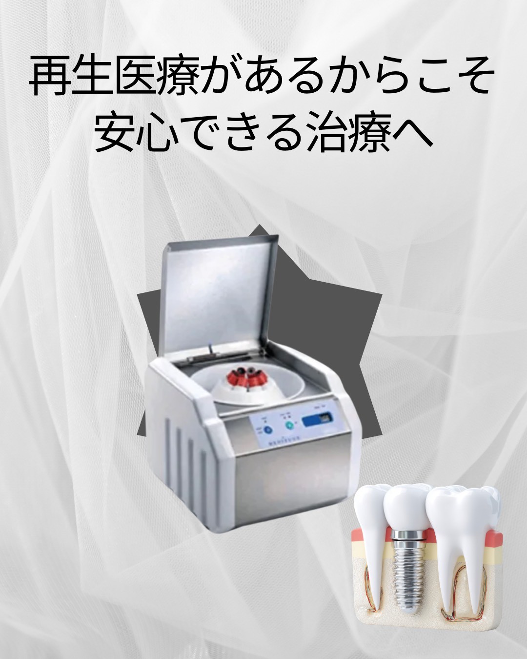 再生医療(CGF・AFG)は、ご自身の血液から作られる安全性の高い治癒促進素材です。