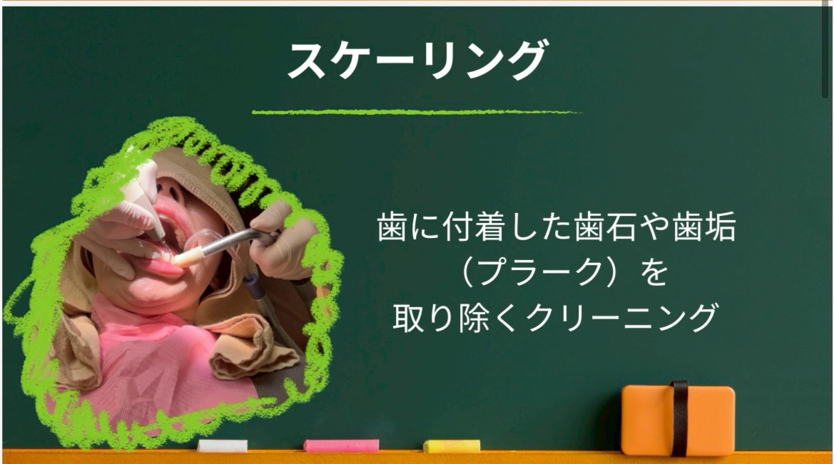 歯に付着した歯石や歯垢(プラーク)を専用の器具で取り除いていきます。
