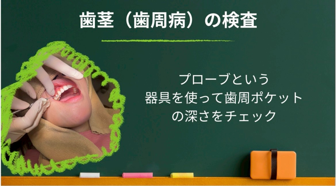 プローブを使用して歯周ポケット(歯茎のポケット)の検査をします。