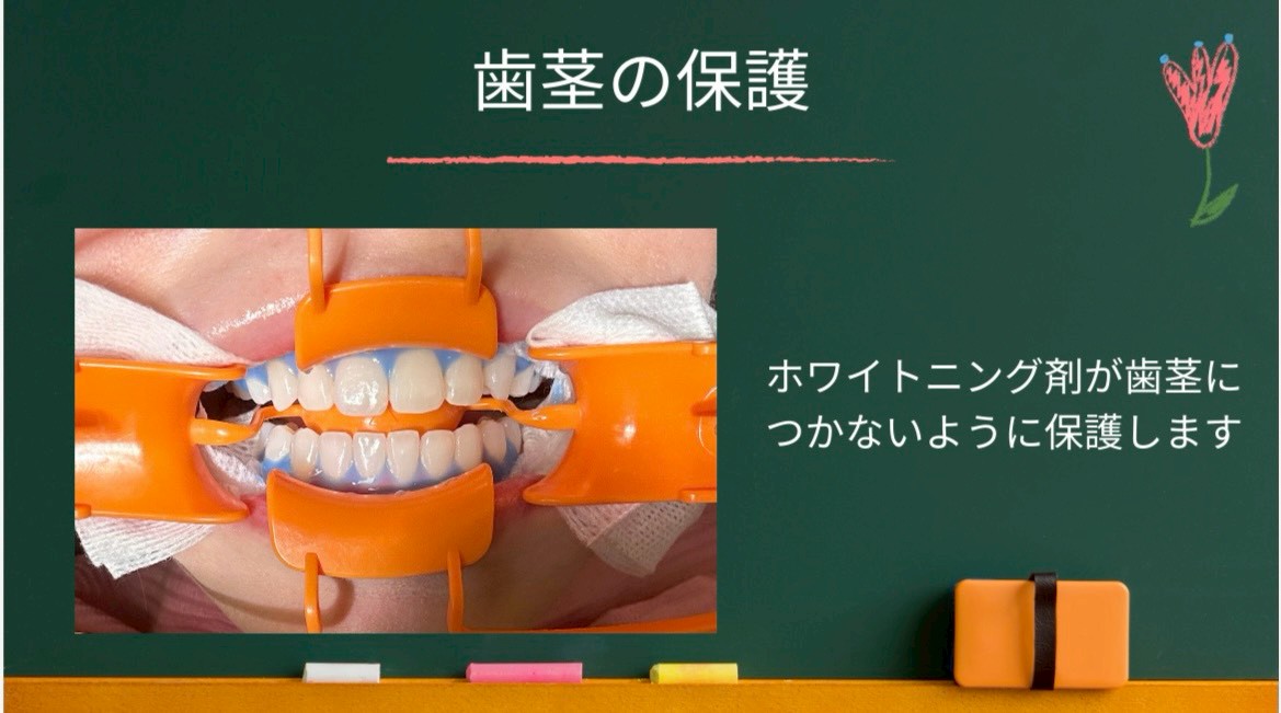 ホワイトニングの薬剤が歯茎につかないようにしっかりと保護します。