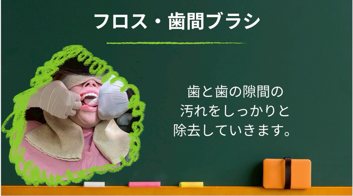 歯と歯の隙間はフロスや歯間ブラシを使用して汚れを除去します。