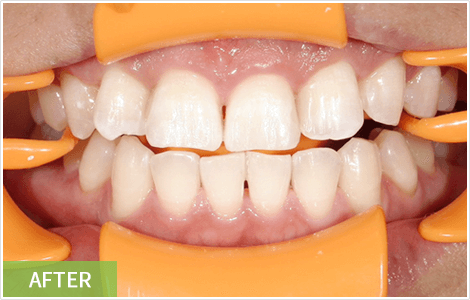 口を開けたときに見える上下の前歯16本に行えば、2回の施術でたちまちのうちに誰からも好印象を持たれる白く輝く歯に変身できます。